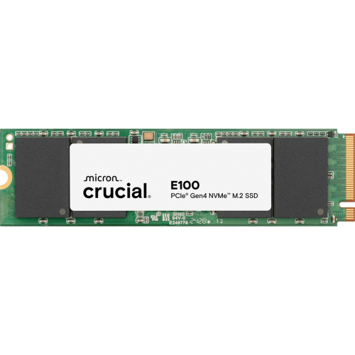 The Crucial E100 NVMe PCIe M.2 2280 Gen4 480GB SSD delivers next-level speed and performance for users who demand more from their storage. Featuring the advanced PCIe Gen4 x4 NVMe interface, it provides blistering read speeds up to 4,800MB/s and write speeds up to 3,800MB/s, ensuring your applications, games, and operating system load in seconds.