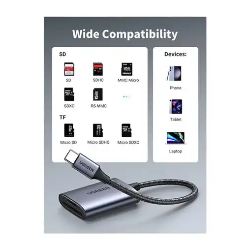 UGREEN CM401 USB-C to SD/TF Memory Grey Card Reader