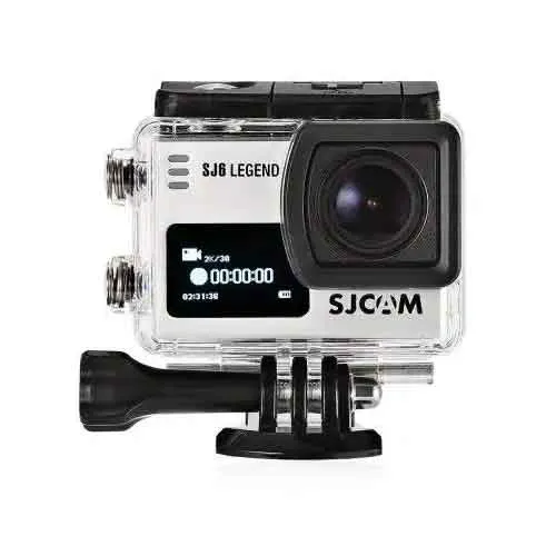 The SJCAM SJ6 Legend features a waterproof case, gyro stabilization, and 4K resolution to capture sharp, high-quality footage no matter what the scene. It can record MOV/MP4 H.264 video at a maximum resolution of 2880 x 2160p at 24 fps and takes 16MP JPEG photos at a maximum resolution of 4608 x 3456. It has a 166° wide-angle lens that facilitates quick focus and captures a large field of view. It features a Panasonic MN34120PA CMOS sensor with a Novatek 96660 chipset. It comes with a 2" LCD rear touchscreen that provides access to settings such as distortion correction, metering, 180° rotation, exposure time, adjustable FOV, loop recording, double file, raw photos, GYRO, EV, color, and white balance, each allowing you to fine-tune your shots. It also has a front LCD with basic information like timecode, resolution, battery level, and record mode. The SJ6 comes with multiple mounting options, bases, and plates for optimal placement flexibility, as well as a waterproof back housing door and a touchscreen door for non-waterproof access during your shoot. The SJCAM SJ6 Legend comes with no warranty